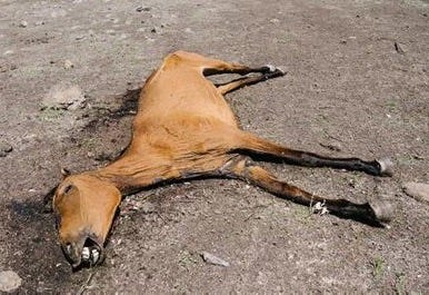 “The authorities came to burn the horse before the locals eat it. Most likely, it died of a potentially communicable disease.”