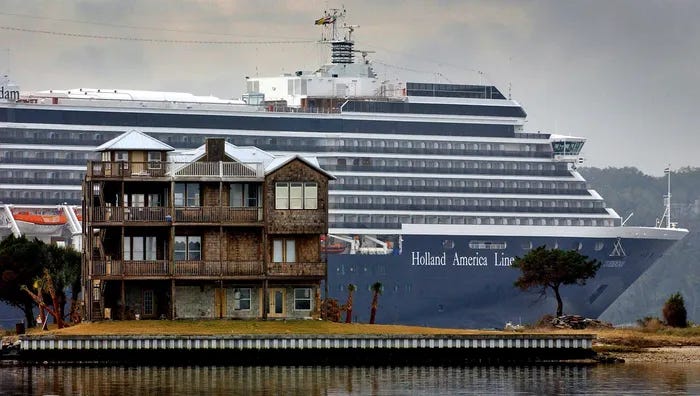 This was interesting. Although it did not affect us, there was a hotel shortage, so the city arranged for five cruise ships to be docked on the Jacksonville River to serve as floating hotels, accommodating over 3,000 guests.