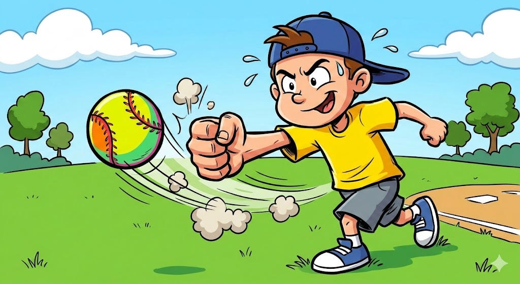 The bigger kids tossed the ball straight up and took a roundhouse overhand swing to launch the missile. Home runs were rare as a hard-hit ball off the wall might ricochet to the second baseman in the small yard.