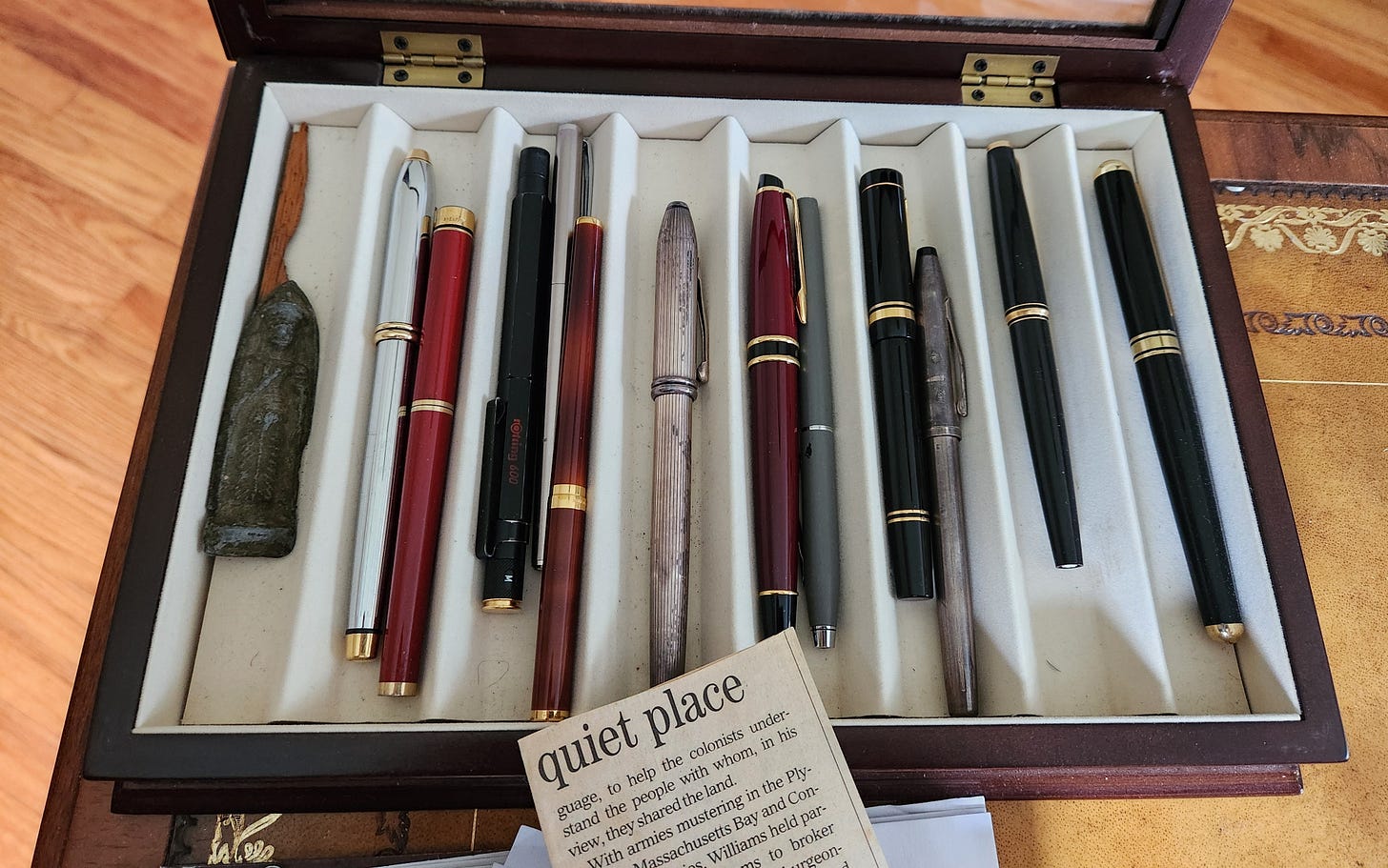 I fell in love with fountain pens when Miss Casey taught us penmanship in the third grade. My penmanship ceased at promising . . . letters too small, sloppily slanted, and hugging the bottom line, never quite reaching the next plateau.