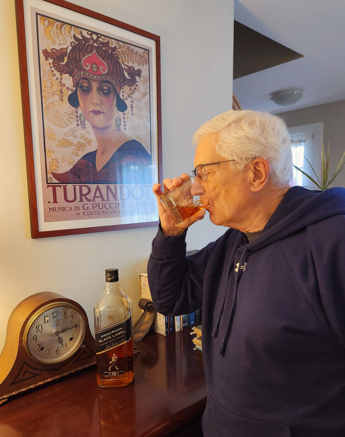 “Well, go buy some.” And off I went. I saw a hefty bottle of Johnny Walker Black on sale. “Hmmm. Why not?”