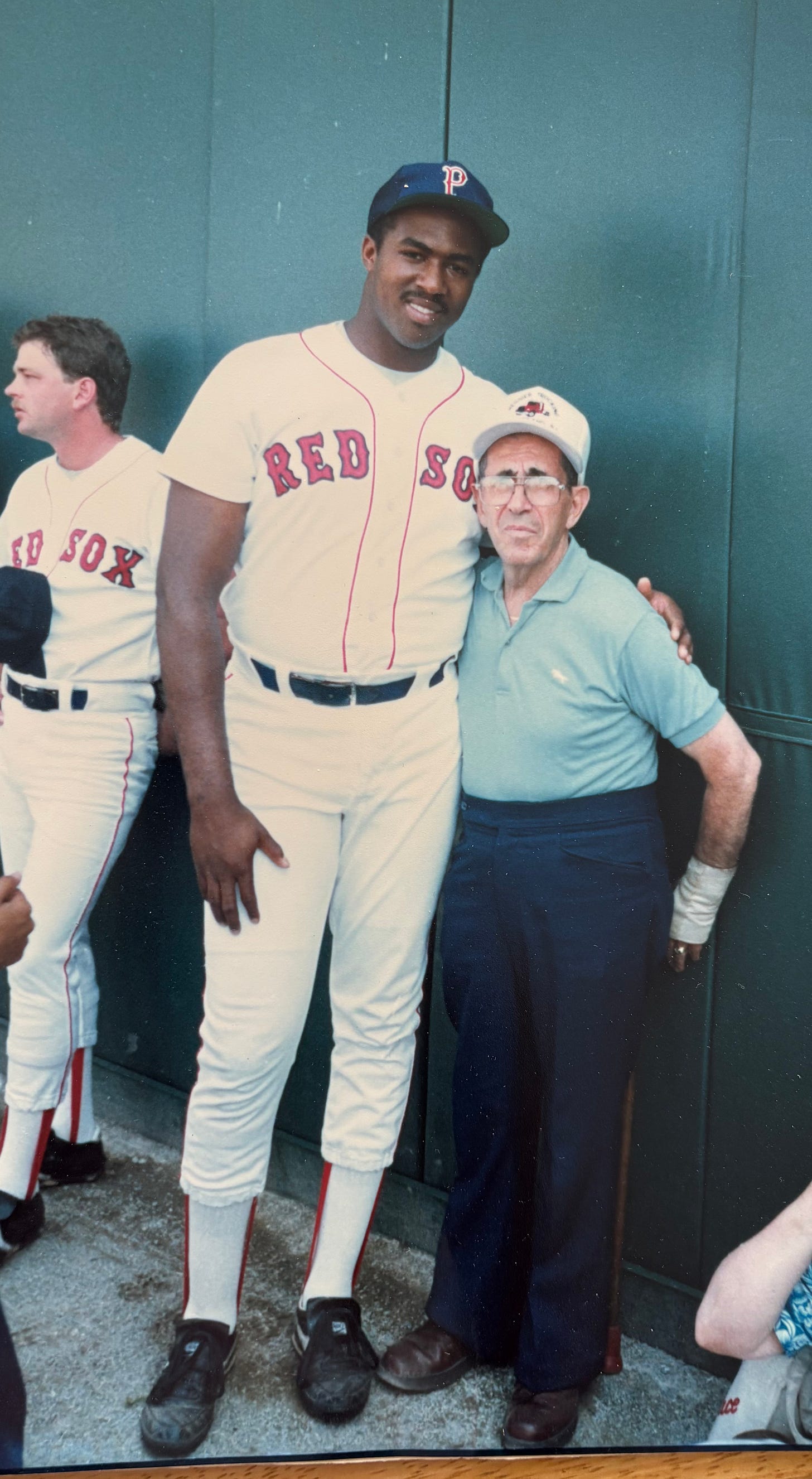 My uncles were alarmed. “Dominic! Be quiet. They’ll throw us out of here! ‘Hey Yogi’ is not a good thing to be yelling at Fenway Park on the first base line near the Red Sox dugout.” But here’s the thing, the real thing.